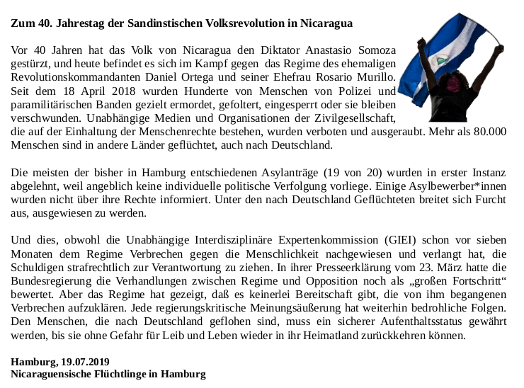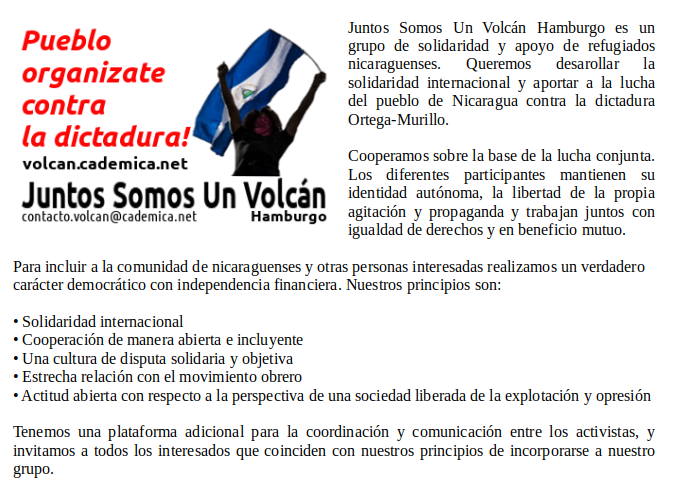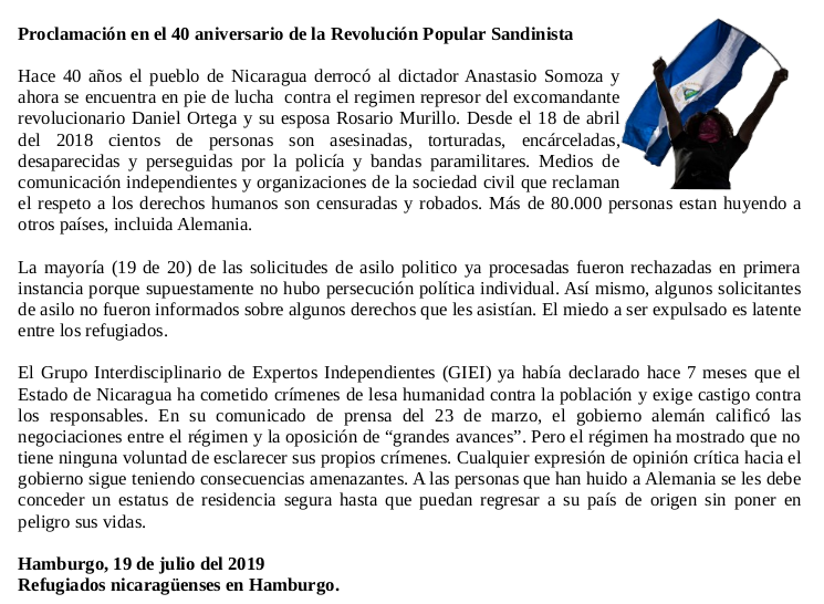 y de otros simpatizantes de los refugiados nicaragüenses en Hamburgo