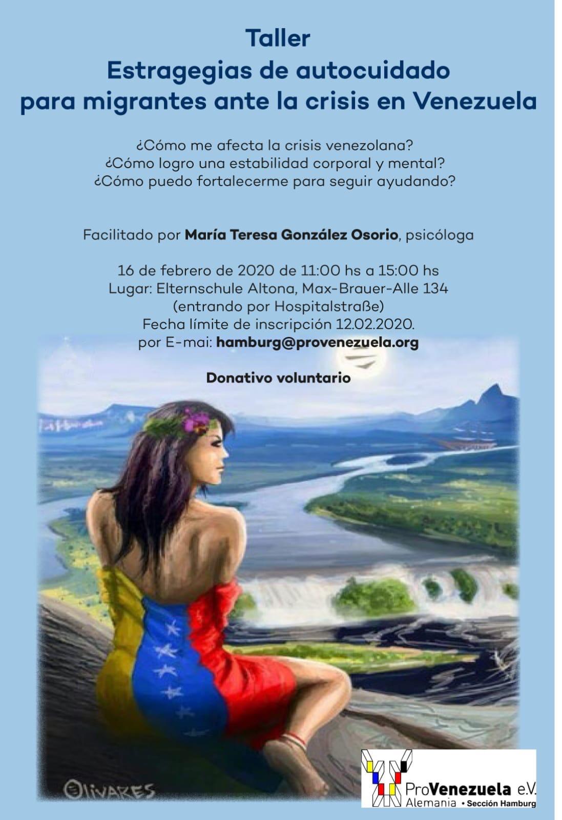 Gracias al grupo ProVenezuela de Hamburgo y la psicóloga Maria Teresa González Osorio hemos podido compartir una experiencia motivadora con participantes de Venezuela, Peru, Colombia, Mexico, Nicaragua y Alemania.